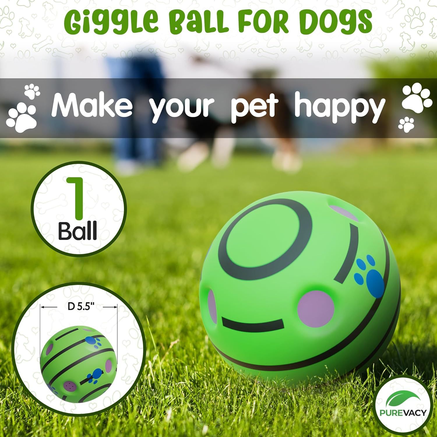 Giggle Dog Ball; 5.5" in Diameter; Green Interactive Dog Toy Sound 12 oz; Vinyl Giggle Ball for Dogs; Wiggle Waggle Ball for Dogs; Sound Dog Toys Wobble; Fun Wibble Wobble Ball for Dogs