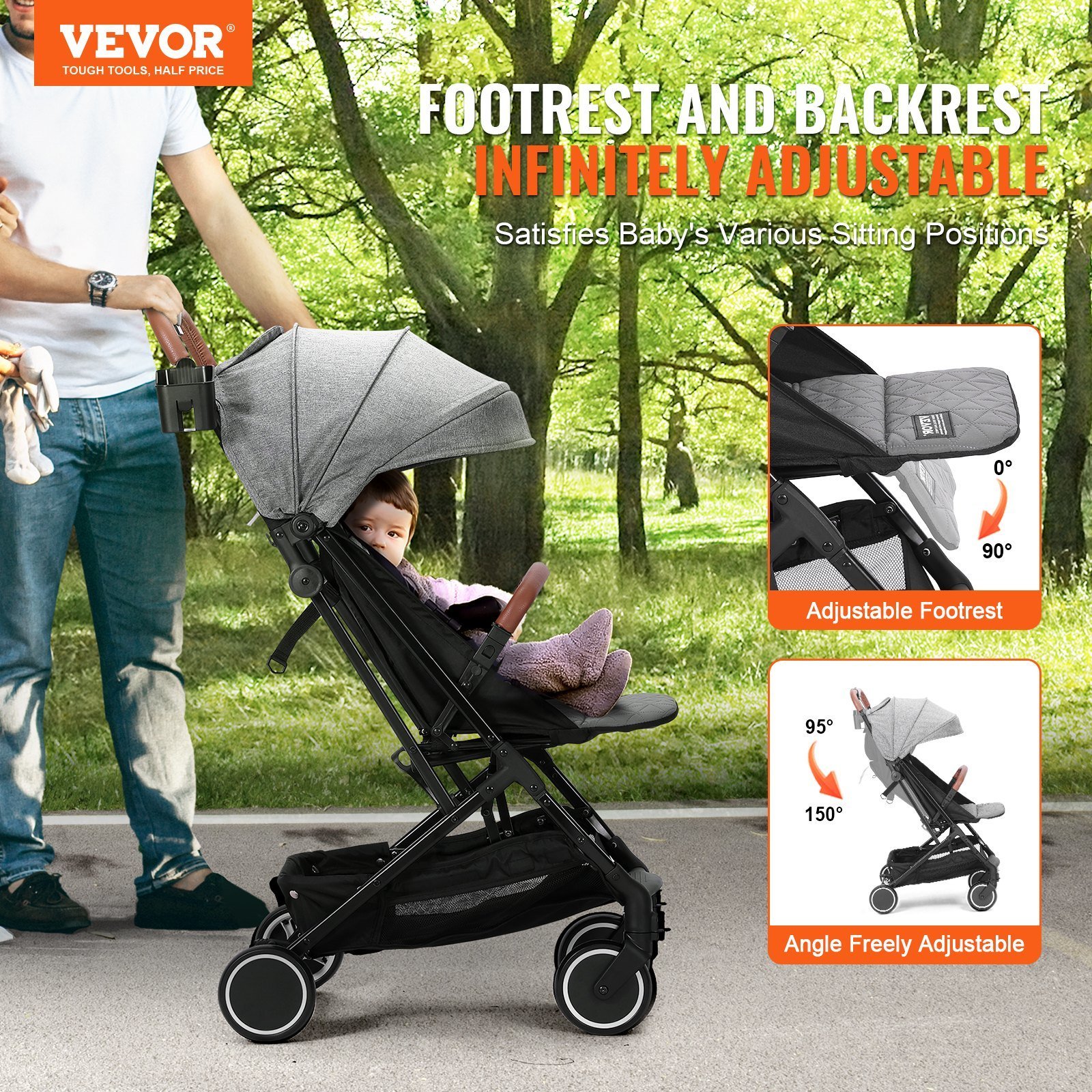 Our baby stroller features adjustable seat back and footrest to meet your needs. It can be easily folded with one hand, equipped with EVA four-wheel suspension, effortlessly handling various terrains. With the capability to serve from 6 months to 3 years old without the need for replacement.